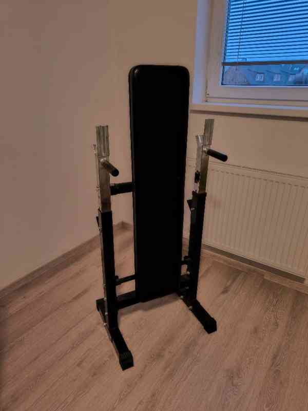 Prodám posilovací lavici a set činek. Lze i separátně. Buď jen lavici nebo jen set činek. Tyč má 150 cm a průměr (viz foto) 2,8 cm. Na tyč lze naložit všechny kotouče, které leží na zemi, tj. celkem 60kg (4 x 10kg, 2 x 5kg, 4 x 2,5kg). Dvě jednoruční činky mají váhu každá 15 kg (2 x 5kg, 2 x 2,5kg). Na jednoruční činky pasují i kotouče z dlouhé tyče, ale již ne naopak. Předání pouze osobně - obec Nupaky u Říčan. Cena za lavici - 1000, cena za všechny činky 2500.