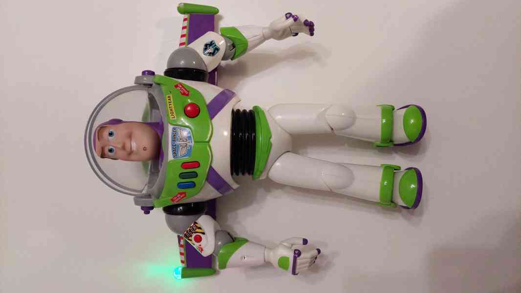 Prodám hračku Buzz Rakeťák z Toy Story (Příběh hraček). Mluví (anglicky), svítí (obě křídla i laser), má ohebné končetiny, helma jde rukou odklopit a zaklopit. Na zádech má tlačítko na mávání rukou, s křídly jde hýbat, ale již nejdou zasunout, ale i tak ještě udělá spoustu radosti. Originál, lehce opotřebený, pořizovací cena byla 1700 Kč. Bez krabice. V nabídce také Sheriff Woody v perfektním stavu za 700 Kč. Při koupi obou slevím 200 Kč. Předám jen osobně v Praze u nějaké stanice metra B (po domluvě), případně předám v obci Kařez/Zbiroh.