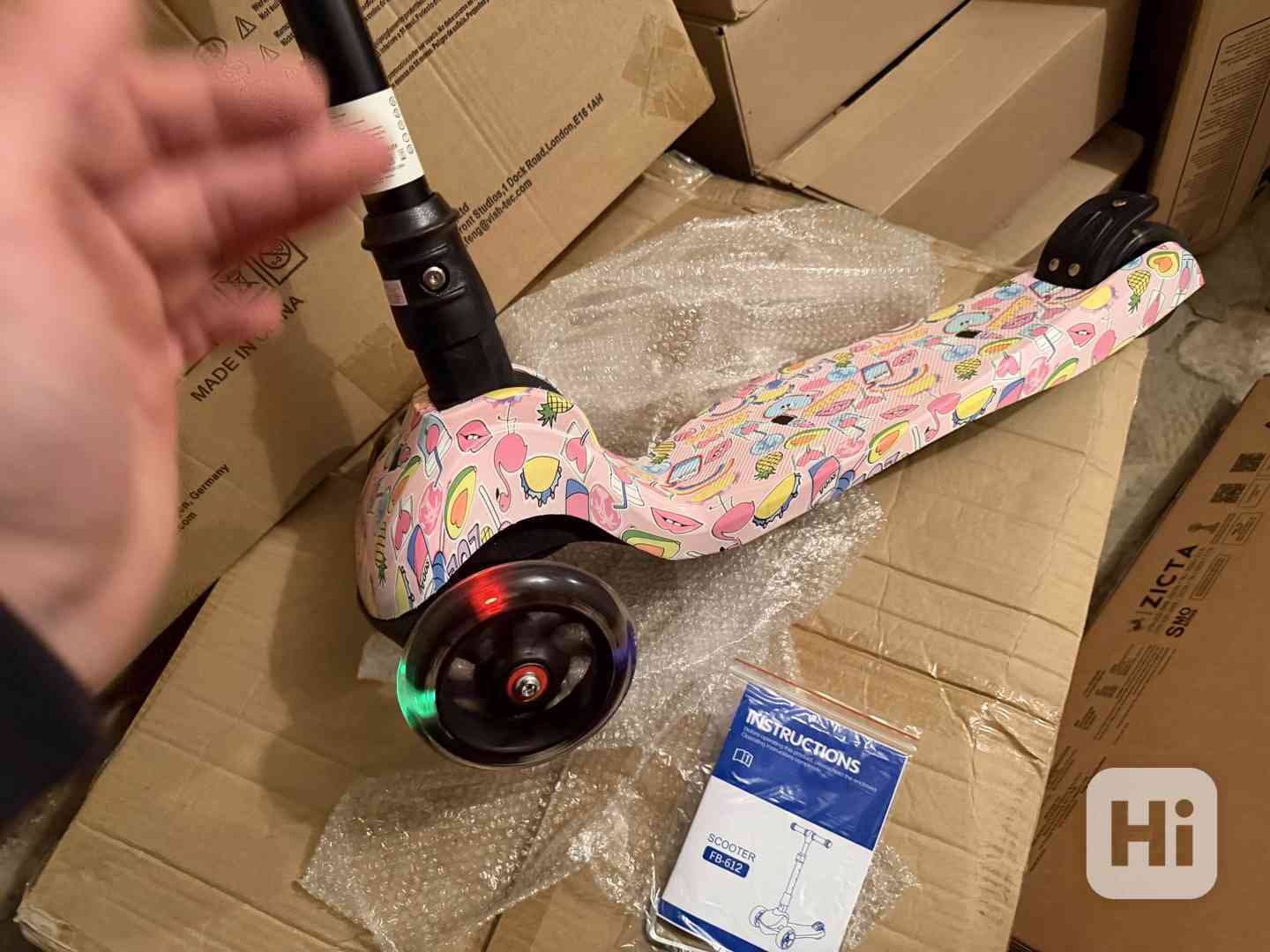 Dobrý den, prodám absolutně novou dětskou tříkolovou 🛴 koloběžku (model FB-612) – typ pro menší děti, koloběžka má barevně svítící kolečka jak ve předu tak i vzadu, kolečka se svítí za jízdy - barevně: zeleně/červeně/modře atd.. různé hezké barevné osvětlení.