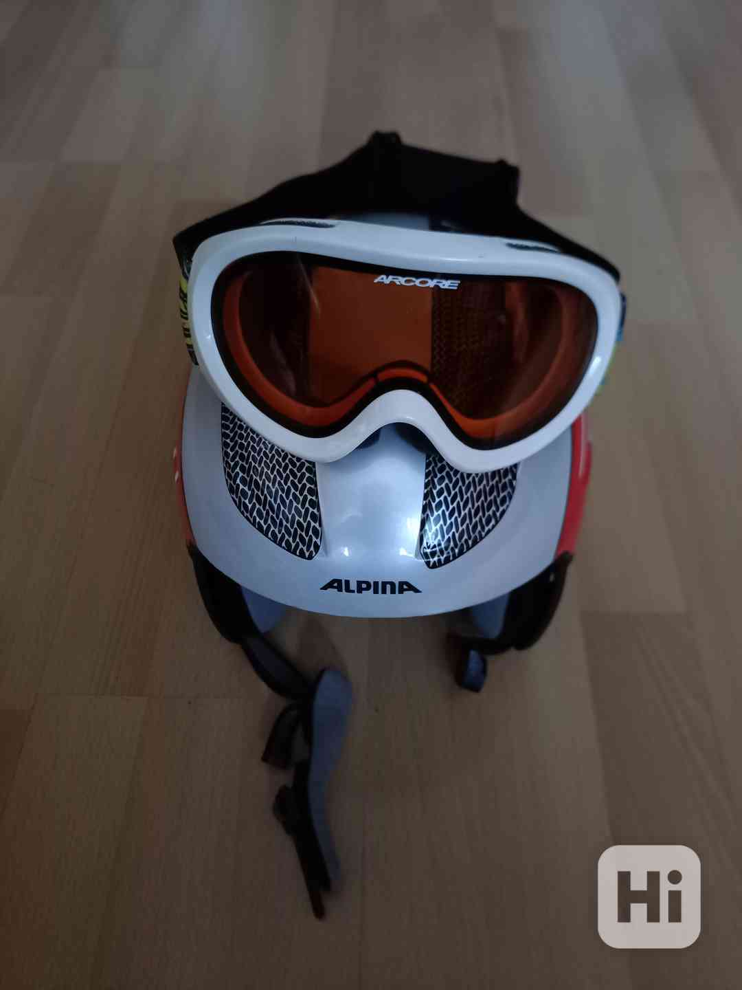 Lyžařská helma Alpina, vel.54-58 + dětské lyžařské brýle Arcore, oboje použité, ale jako nové.