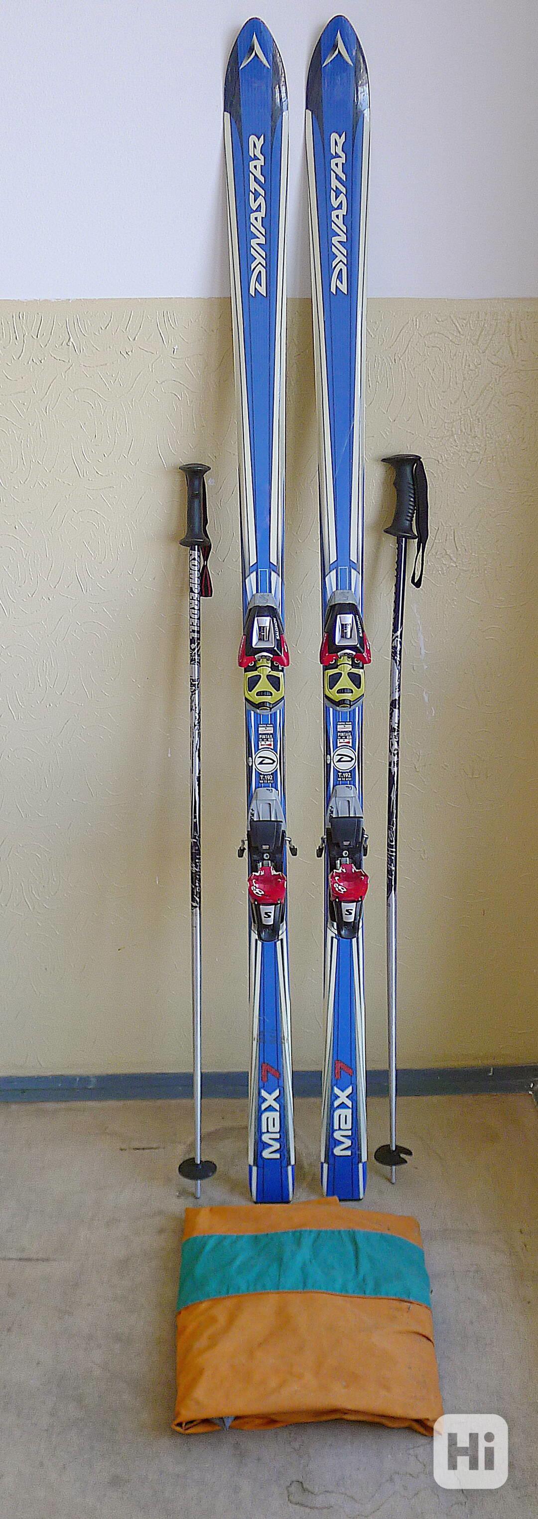 Prodám sjezdové lyže DYNASTAR, délka 192 cm, vázání SALOMON, vázání nastaveno na velikost boty 45-46, ve velmi dobrém stavu, dobře točivé, k tomu hůlky a vak na lyže. K odběru v Praze.
